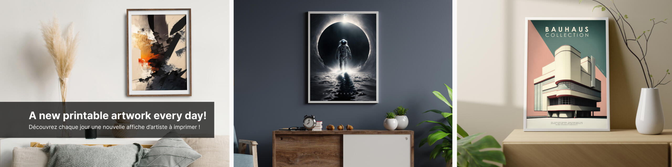 Turn your walls into a real art gallery with our collection of posters of various themes and styles: Bauhaus, cinema, manga and Japanese animation, video games, cyberpunk, vintage, abstract art, and many more!